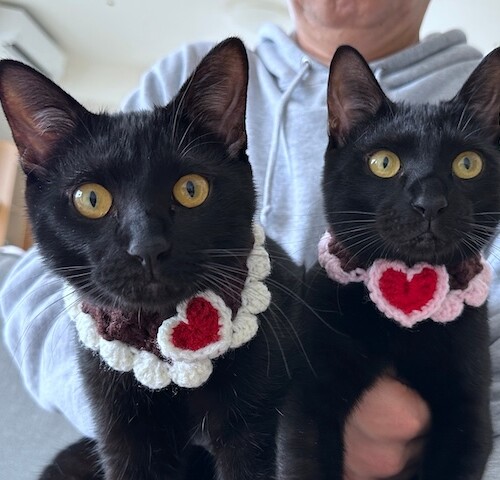 バレンタインデーですね💘 さくムサさんにとって、 人(猫)生初のバレンタインデーです! 手編み 猫 首輪【つけ襟 バレンタイン ハート】...