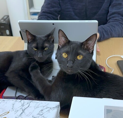 タイムラグがありますが、 2月11日(水)建国記念日のこと。。。 父が家で仕事していたのですが、 ネコハラに遭ってしまった様子です。。。 ※ネコハラス...
