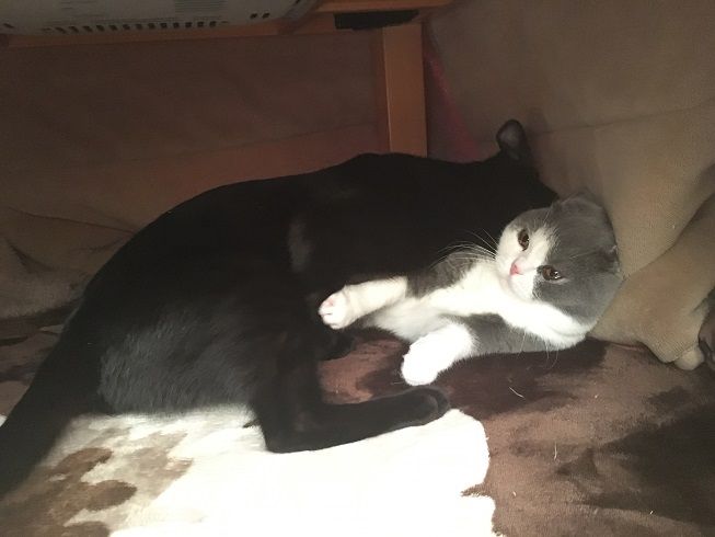 早速、人間コタツで梅子さんがおくつろぎ中のところを、