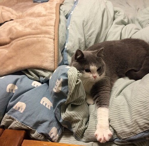 猫こたつでくつろぎながら、語るヤマトさん。