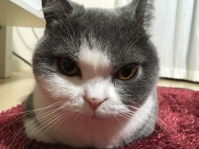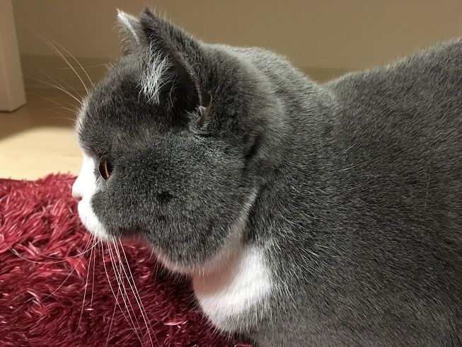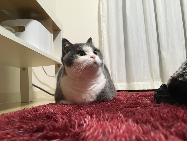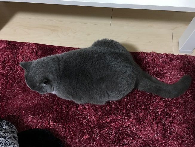 ラグの上でおくつろぎ中の梅子さん。