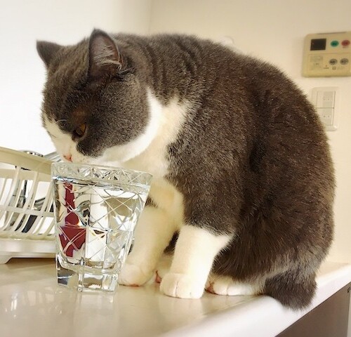 半端ない目力で、毎晩お水を眺められる梅子さん(^^;;
