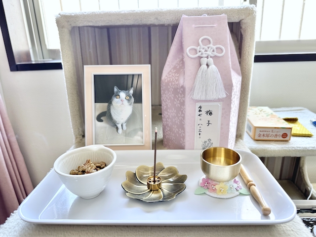 梅子さんの祭壇に、”おりん”を買いました。毎日、朝晩手を合わせて、お経を唱えています