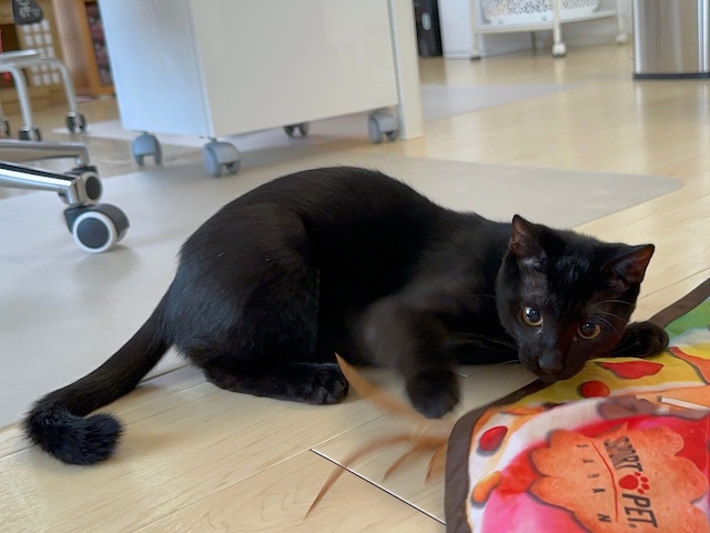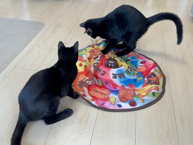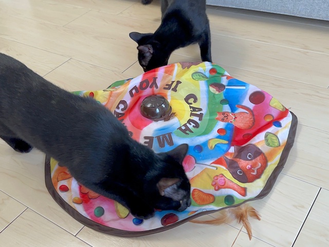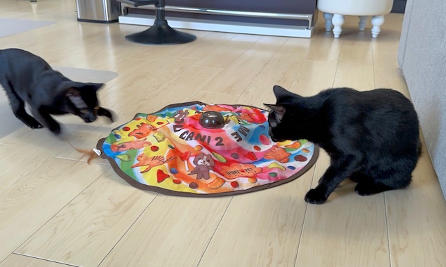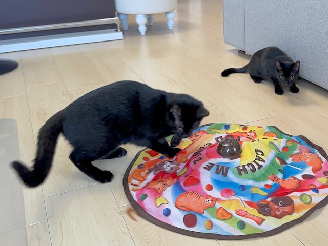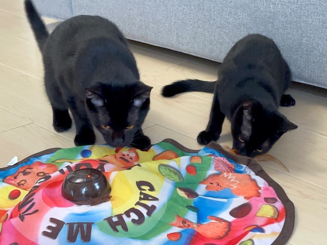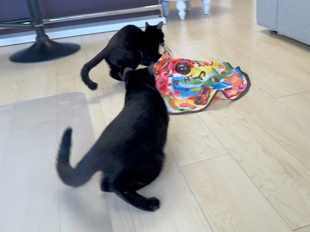 あたちたちも燃えたオモチャ、大事にしてにゃ