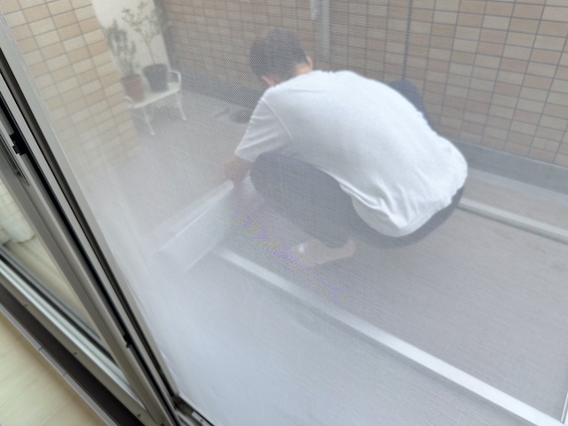 お父さんが、網戸の張り替えをしてくれるのですよ