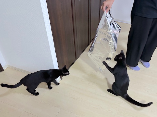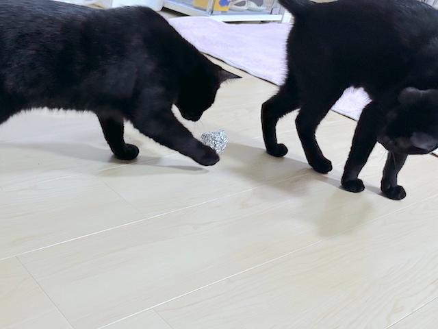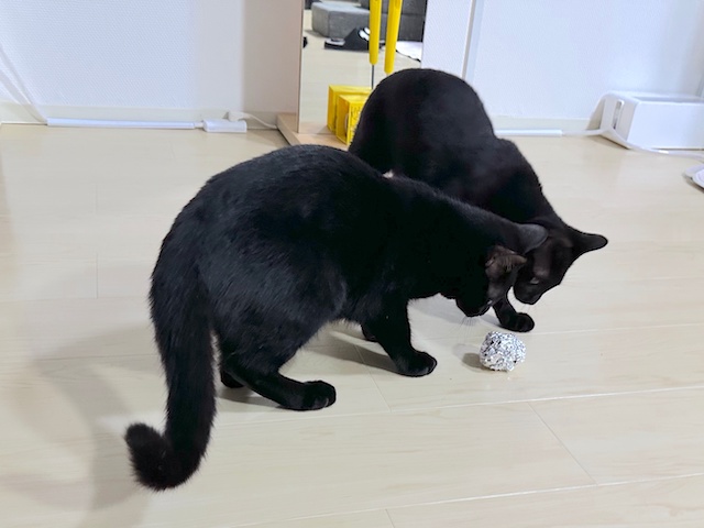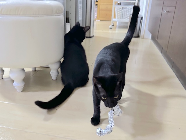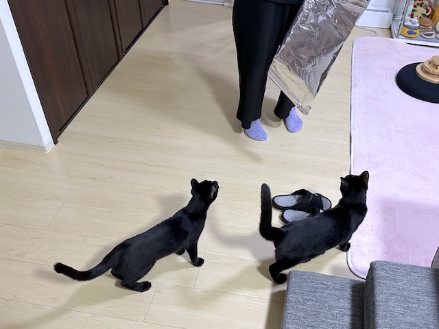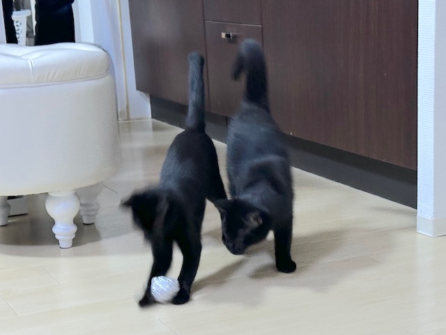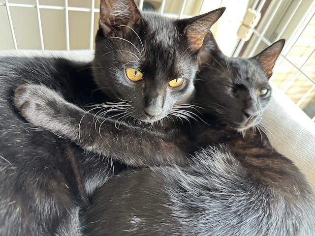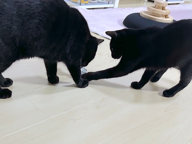 帰宅後のさくムサさん。寄り添って可愛いですね