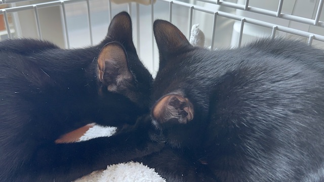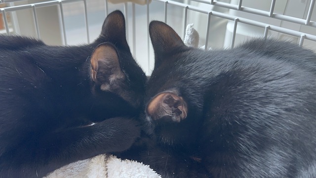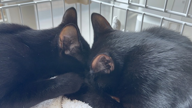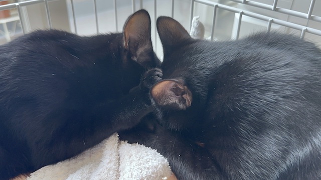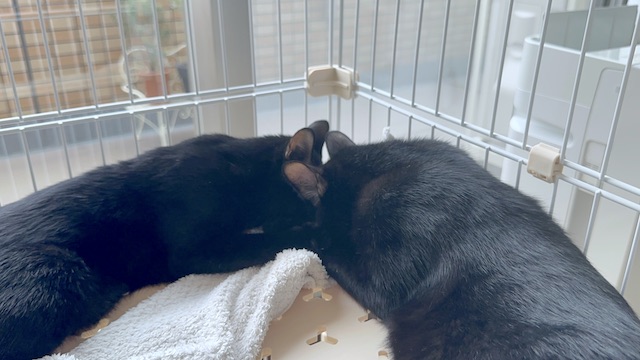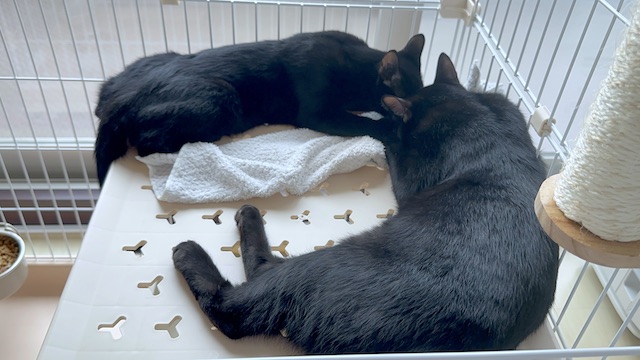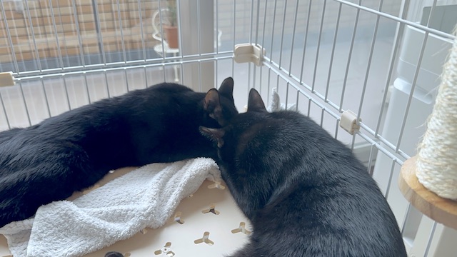ムサシさんの顔にモミモミなさる、さくらさん🐈⬛🐈⬛