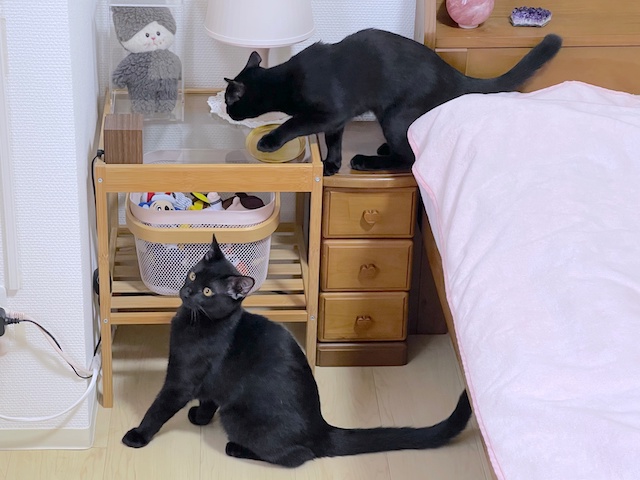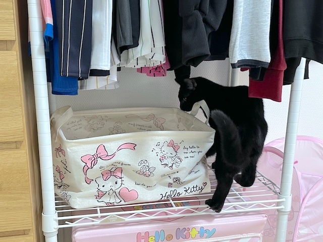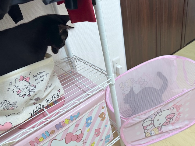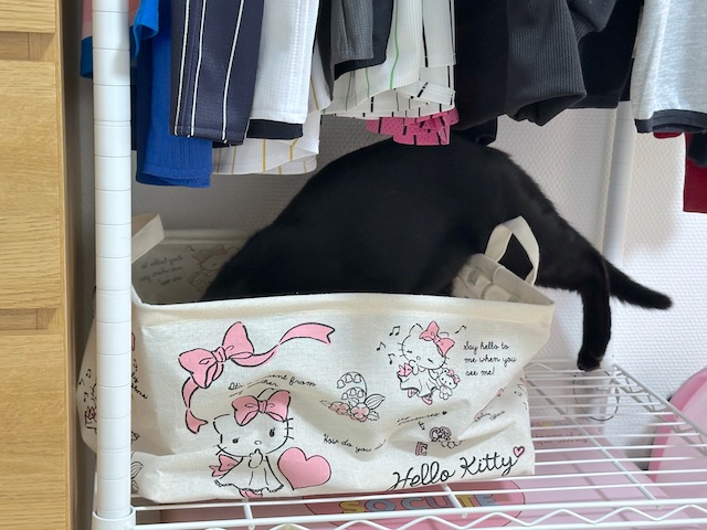 一方ムサシさんは、これまた梅子さんが、よく入られてたカゴへ