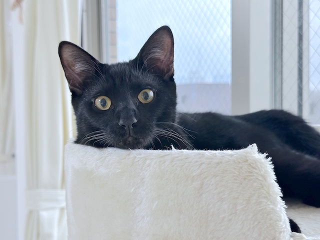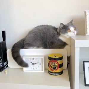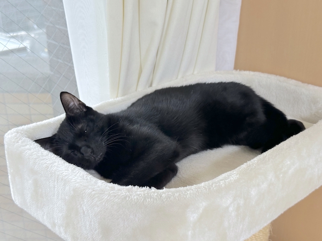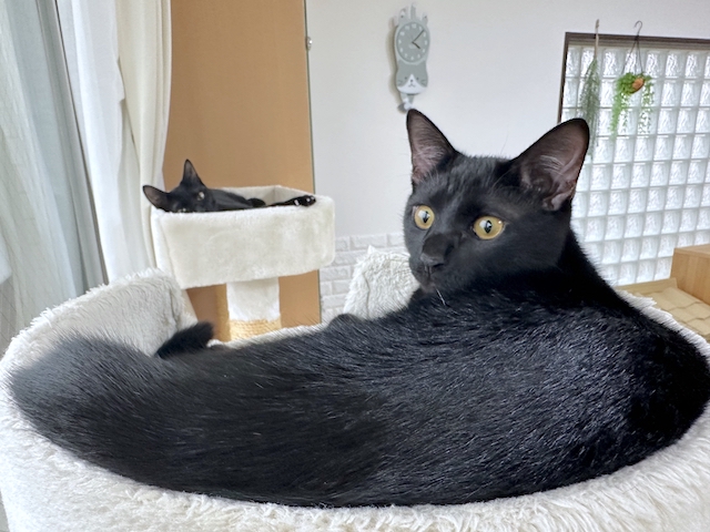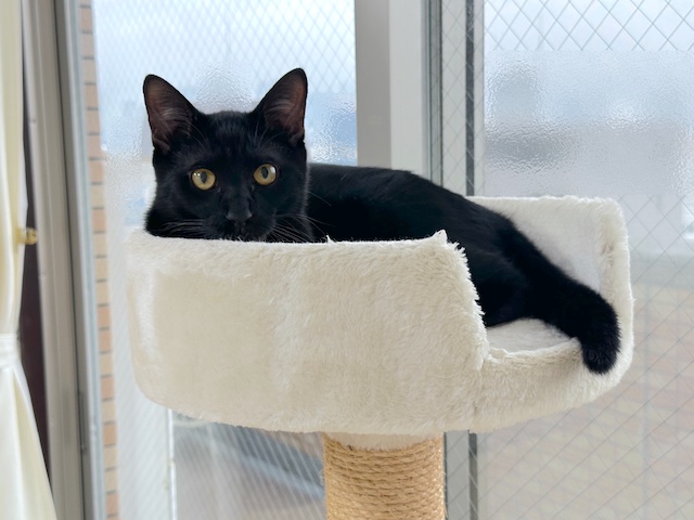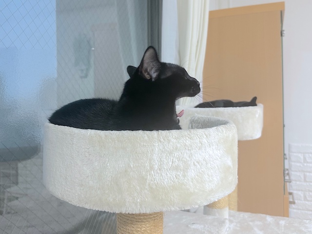 オレ様、キャットタワーのベッドによくいたにゃ
