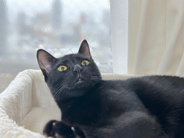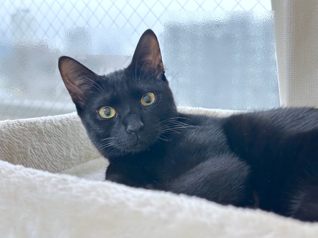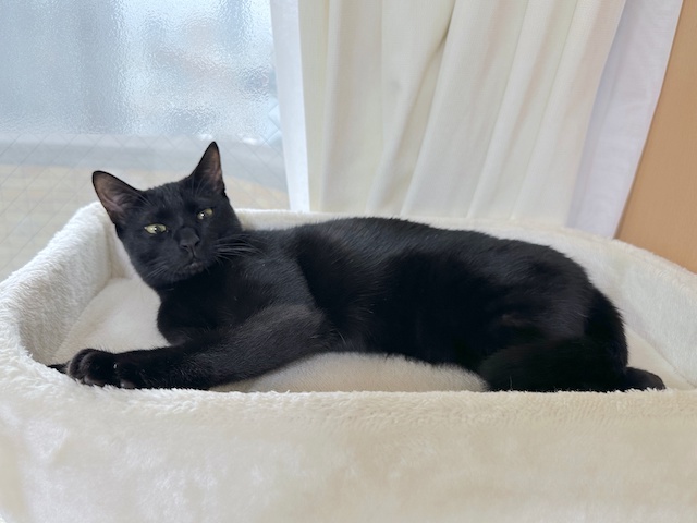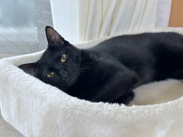 小さい丸いベッドが、オレ様だにゃ