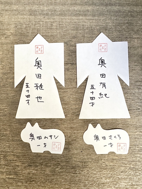 ところで今日、思い立って少彦名神社へ参拝して、家族一同の健康祈願として、人型とペット型をお願いしました
