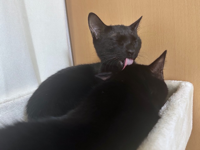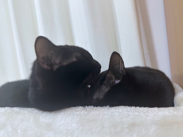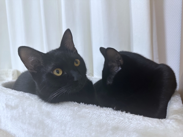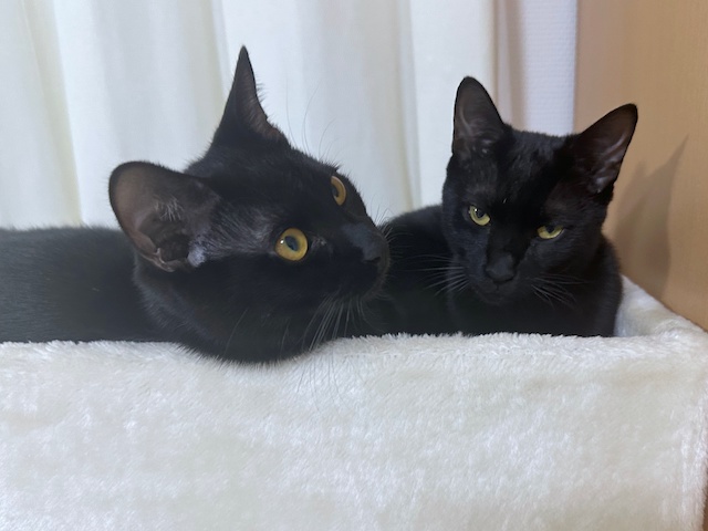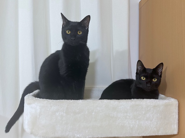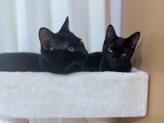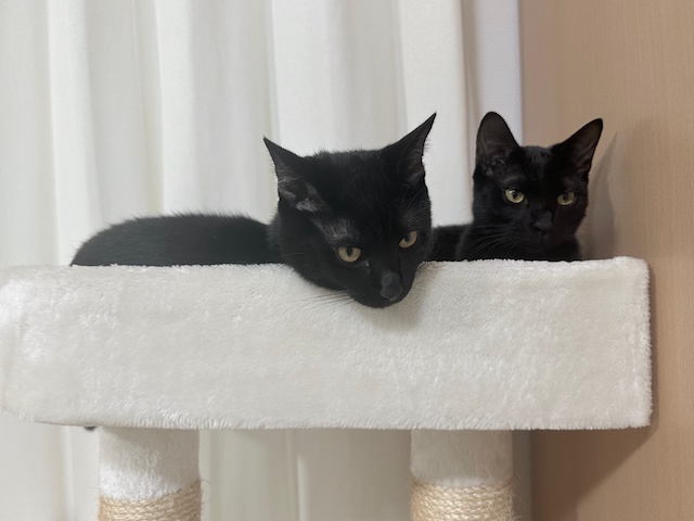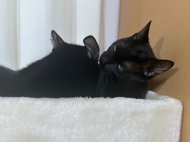 お二人、同じキャットタワーのベッドで、寄り添っておられますね♡