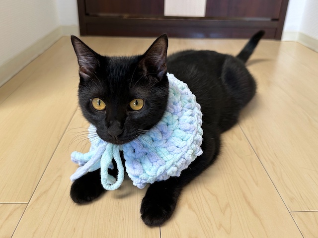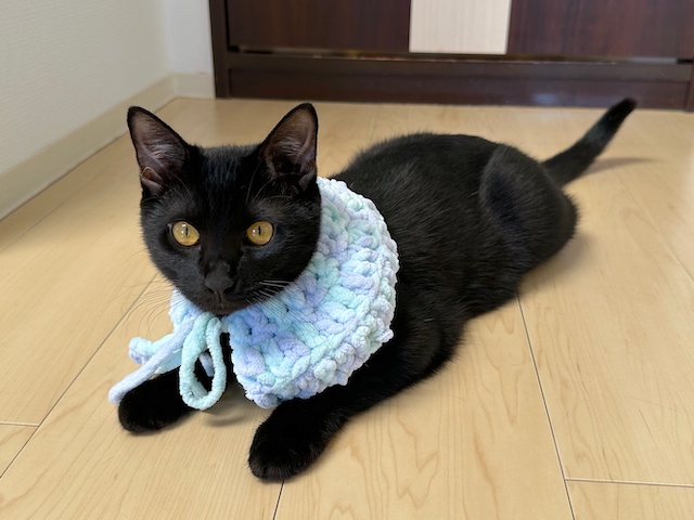 今回は、母が編んだケープです