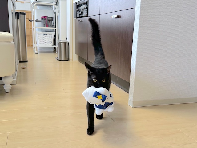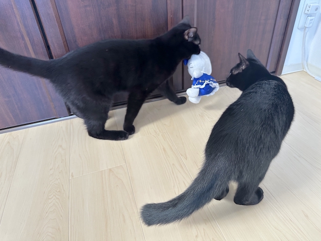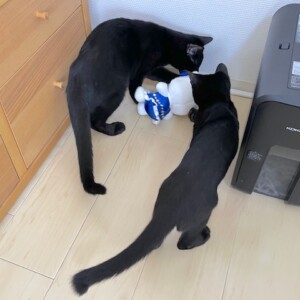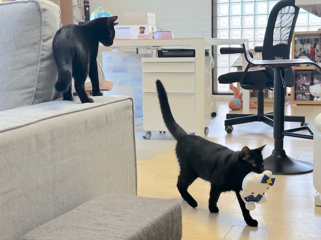 一緒に、リビングをぐるぐる回ってるんだぜにゃ