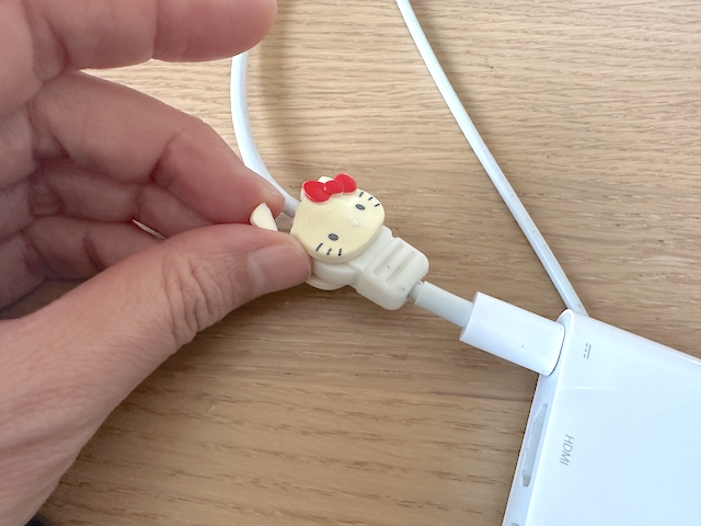 ・・と、しばらくおとなしくして、作業を見守ってくれてたムサシさんですが、暴れ出して、コードを保護するキティちゃんのこれを、噛みちぎって、口にいれておられました💧