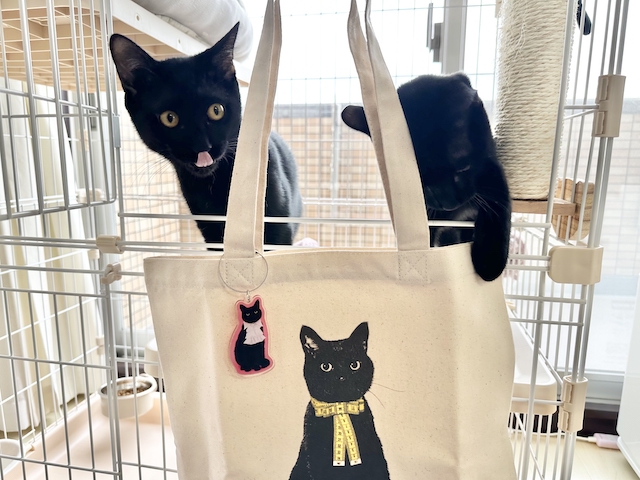 黒猫のジュウハンくんのトートバッグが届いた時のことです。