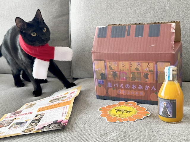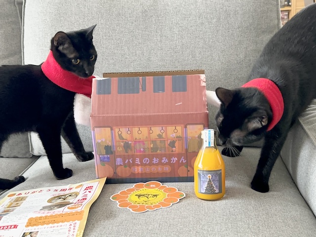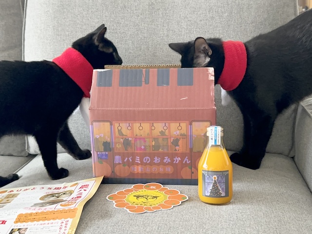 これは、うまそうにゃ、おみかんジュースだにゃ