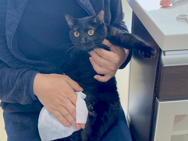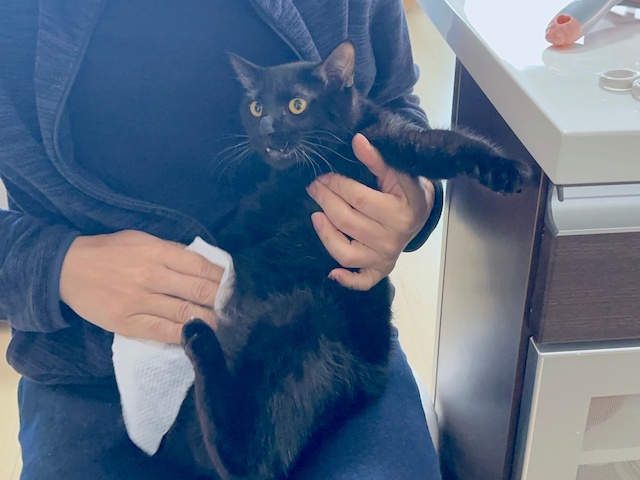 最後は、身体を拭きますが、これもまた嫌がられるのですよ💧