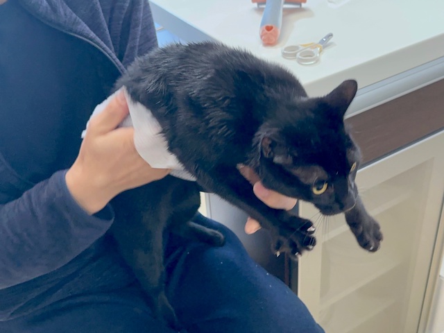 あたちも、体拭き拭きは嫌にゃの〜