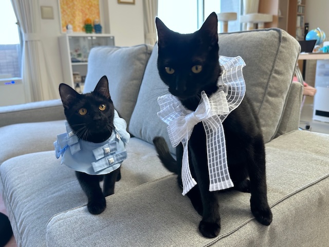 母ちゃんが、いろいろ着せたがるんだにゃ