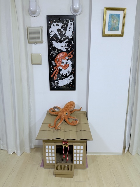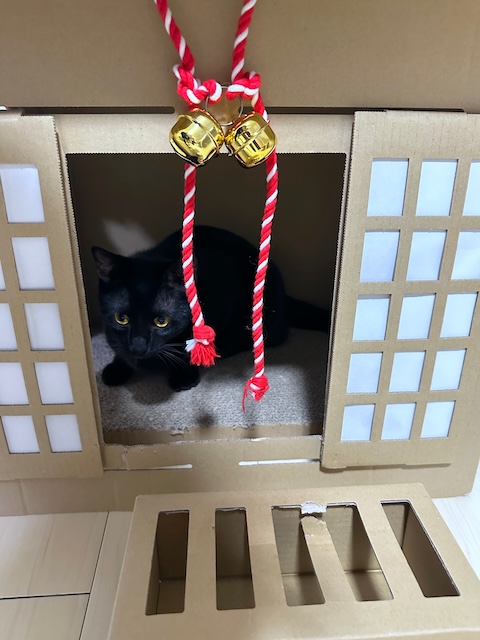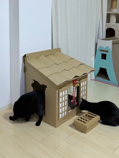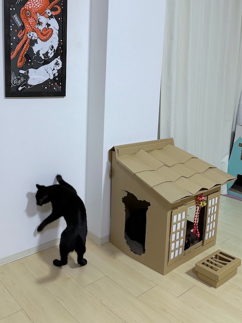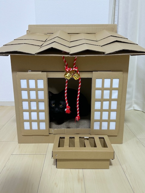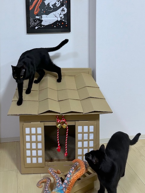 撤去して、神社爪研ぎを置いてみました。