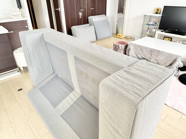 ソファーをひっくり返して