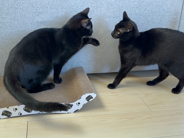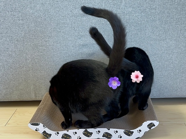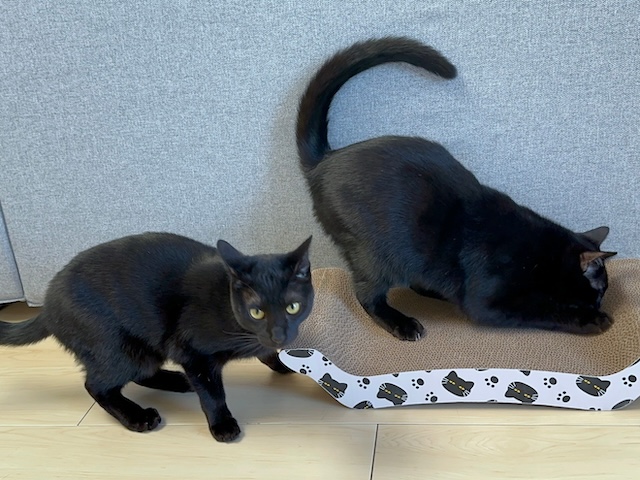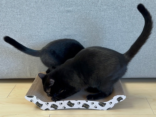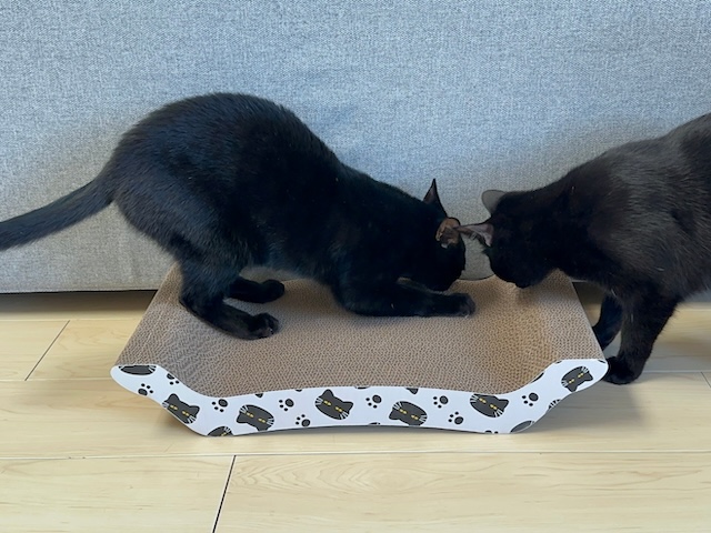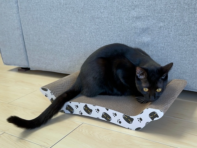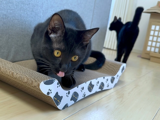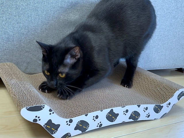 黒猫さん爪研ぎですよー
