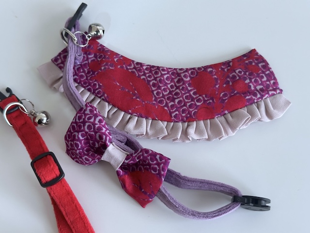 猫はそのままで美しく、人間は一緒にいられるだけで幸せ。だけど、猫とおそろいのアクセサリーをつけられたら人間はもっと幸せになれる!「ネコノテ堂」では着物生地を使った一点物の猫の首輪を販売しています。また、ペットと飼い主のお揃いアクセサリー(ピアスやヘアーバンド、蝶ネクタイなど)もあります。大人用・...