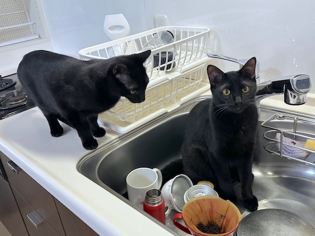 普段ならゲージにおられるタイミングでも、放牧してたため、洗い物があるところにも、ご入場されてる様子です💧