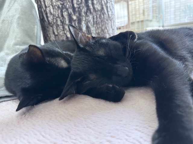 さくらさんが、ムサシさんを腕枕なさってます