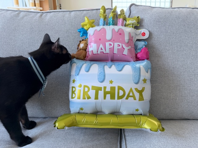 お誕生日風船を膨らませたところ、さくらさんはビビってしまわれました…