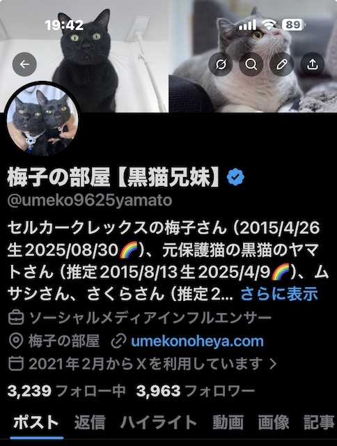 — 梅子の部屋【黒猫兄妹】 (@umeko9625yamato) March 16, 2026