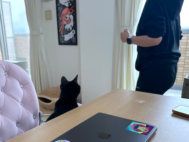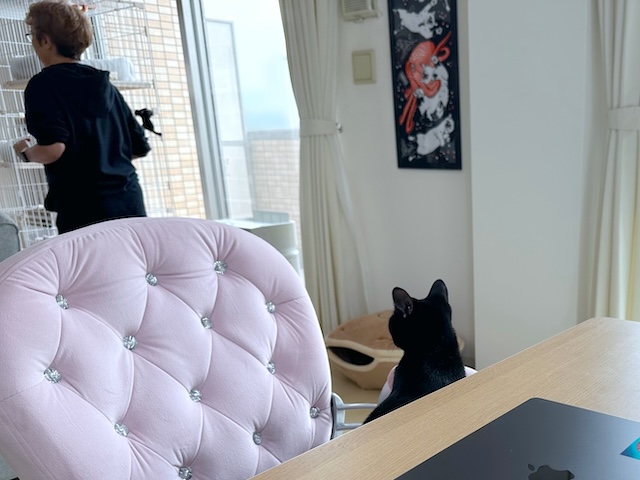 にゃんか、母ちゃんが部屋を回ってるにゃ?