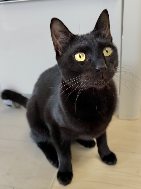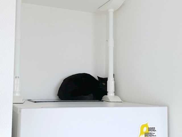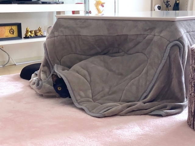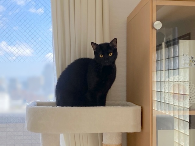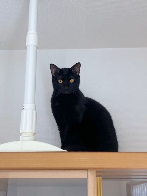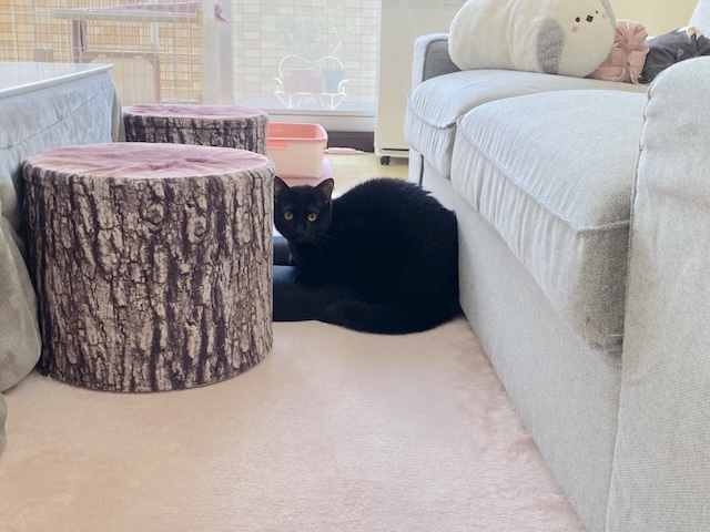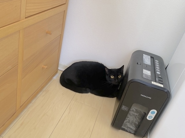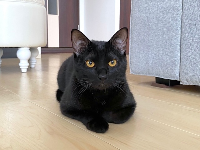 あたちは父ちゃんの黒い椅子で、同化してるにゃ