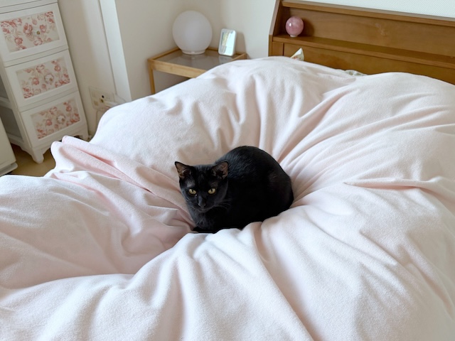 まずは、母のお布団の上でおくつろぎです
