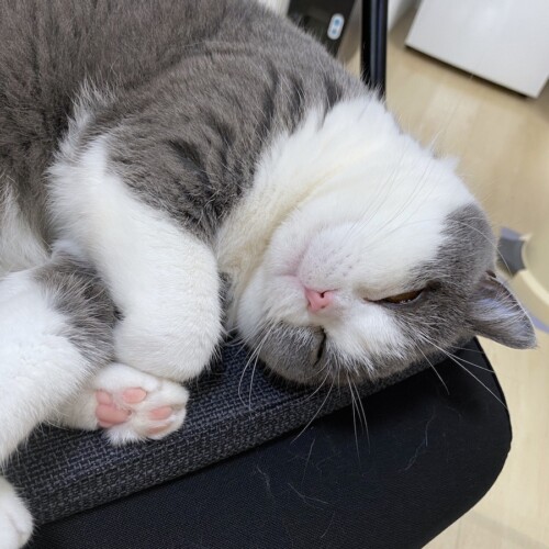 しばらく続く、模様替えネタ。。。 こうして、母にもデスクスペースができたのですが、 早速、おくつろぎして占領されております(^^;; 梅...