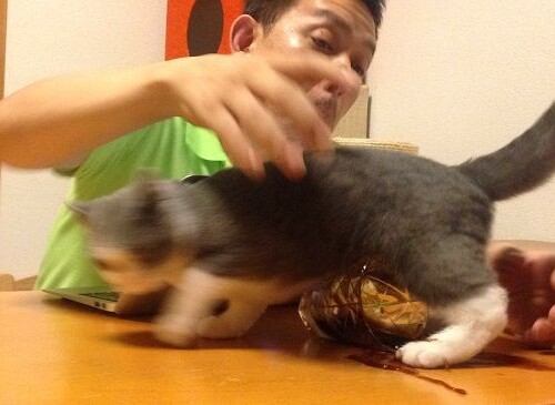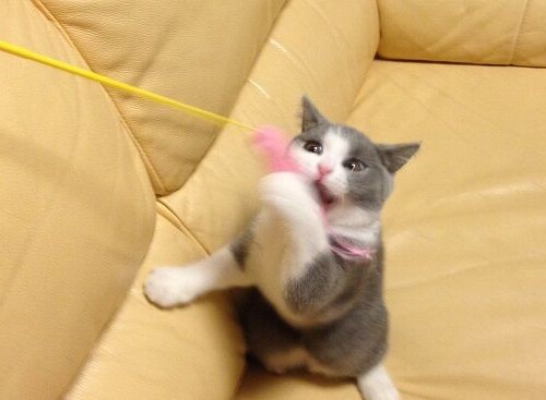 こちらの記事の続編です。 今度は、ソファーの上で猫じゃらしプレイ。 落下しながらも、這い上がり、燃えておられます。。。 &...
