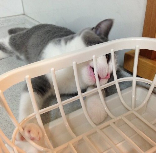キッチンの水切り籠を リニューアルした梅子ハウス。 早速気になってるご様子です。。。 梅子「あたちの許可にゃしに、変えたにゃぁ…(一_一...