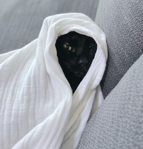 ガーゼケットが好きなヤマトさんは、 母が昼寝すると入ってこられます。 その後、母が起きても ガーゼケットをご堪能されてます。 ヤマト「快...