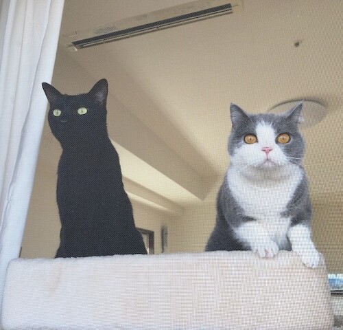 ある日の朝、仲良くキャットタワーで 朝の空気をご堪能される梅ヤマさん。 ※安全のため、目が届くときだけ窓を開けています。 梅子「朝の空気...