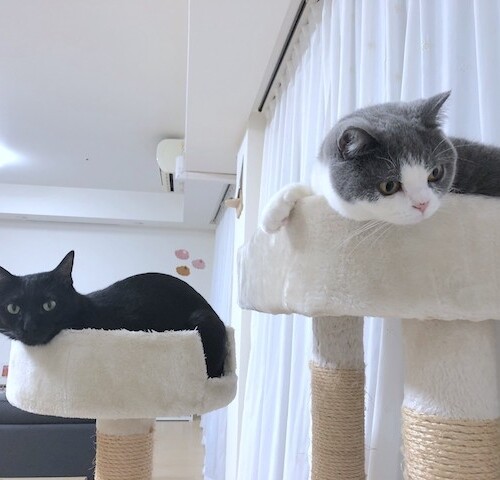 毎晩、遊ぶのを催促されるのですが、 この日は、キャットタワーで 待ちくたびれた様子でおられた梅ヤマさん、、、 ヤマト「待ちくたびれたにゃ...