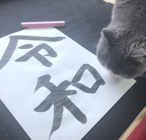 昨日、新元号が発表され 母も書を書いてみましたところ、、、 梅子「にゃんだ?」 母「新元号を書いてみましたよ」 梅子「そも...