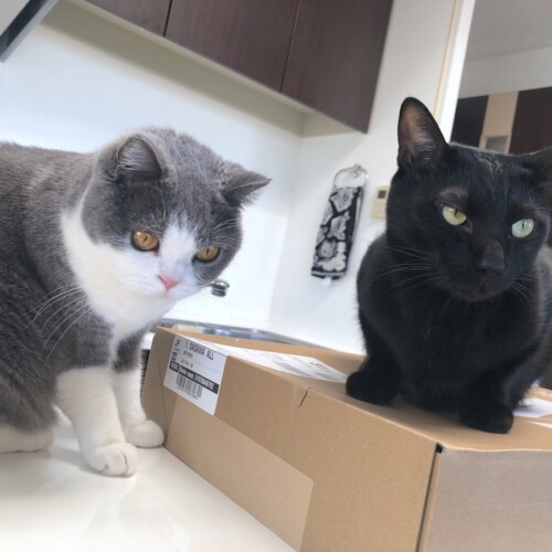 ZARA通販での買ったものが 届いたときのこと、、、 ヤマト「にゃんか届いたにゃ」 母「ZARAで注文したものですよ」 梅...