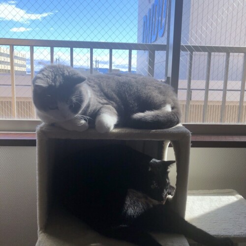 日向ぼっこをご堪能ちうの梅ヤマさん。。。 梅子「いい天気だにゃ〜」 ヤマト「だにゃ〜」 梅子「また、母ちゃん、撮影に来たに...
