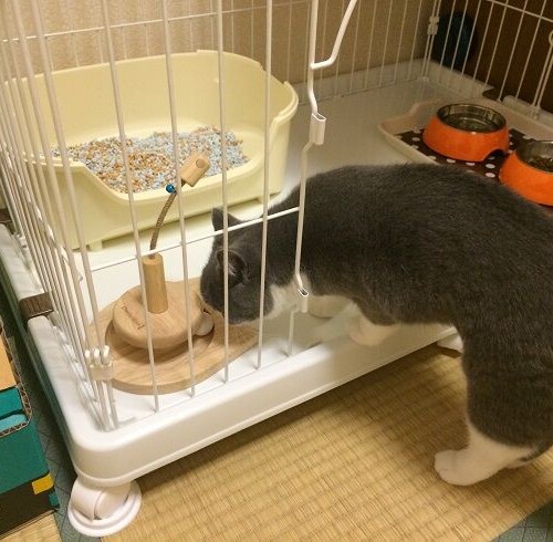 この記事の続編です。 ゲージに侵入した2人は、 オモチャで遊びだしました♪ 梅子「ゲージに侵入だにゃ」 ヤマ...