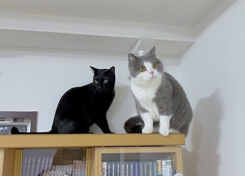 模様替えをした梅ヤマさん宅にて、 今まで登れなかった本棚に 登れるようになった梅子さん。 早速調査されてたのですが、、、 梅子「ここが、...