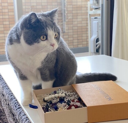 母が、運営しているショップの 新商品を撮影していた時のこと、、、 梅子「にゃんだ?」 母「新作のブレスレットですよ」 梅子...