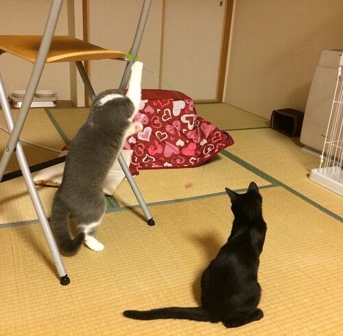 オモチャで激しく遊ぶヤマトさん。。。 最後には、梅子さんもこっそり・・・ 今度は、こたつからじっくり・・・ ...