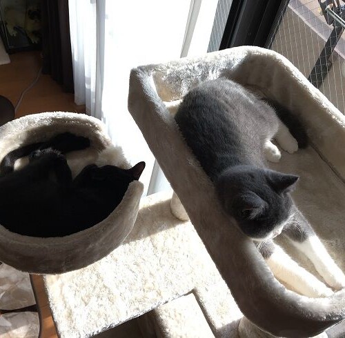 先日、梅ヤマ家に 新しいキャットタワーが届きました♪ 早速、堪能される梅ヤマさん。。。 梅子「コイツ、楽ちいにゃ~」 ヤマト「景色いいに...