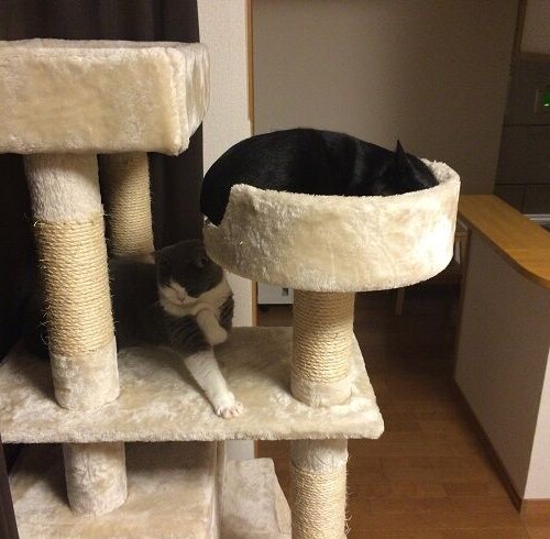 いつものように、キャットタワーで おくつろぎの梅ヤマさんですが、、、 梅ヤマ「zzz….」 母「同じポーズですね」 &nbs...